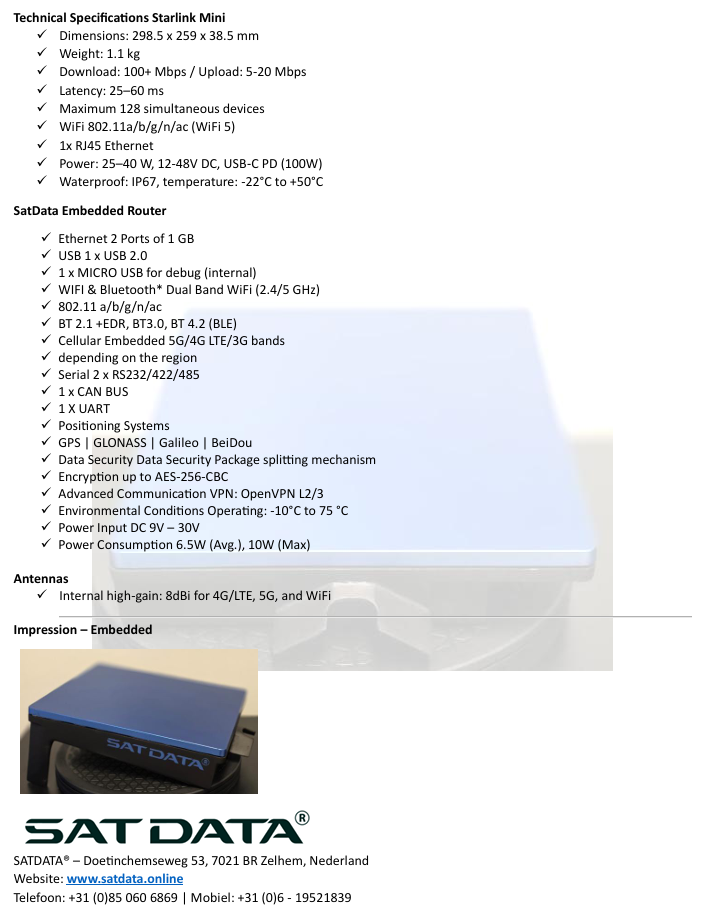 SatData® biedt betrouwbare mobiele internetoplossingen via een unieke combinatie van 5G mobiele data en satelliet-internet (zoals Starlink).